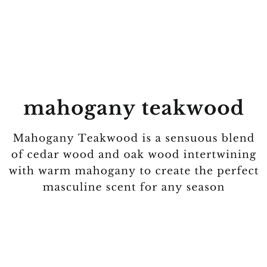 Mahogany Teakwood is a sensuous blend of cedar wood and oak wood intertwining with warm mahogany to create the perfect masculine scent for any season