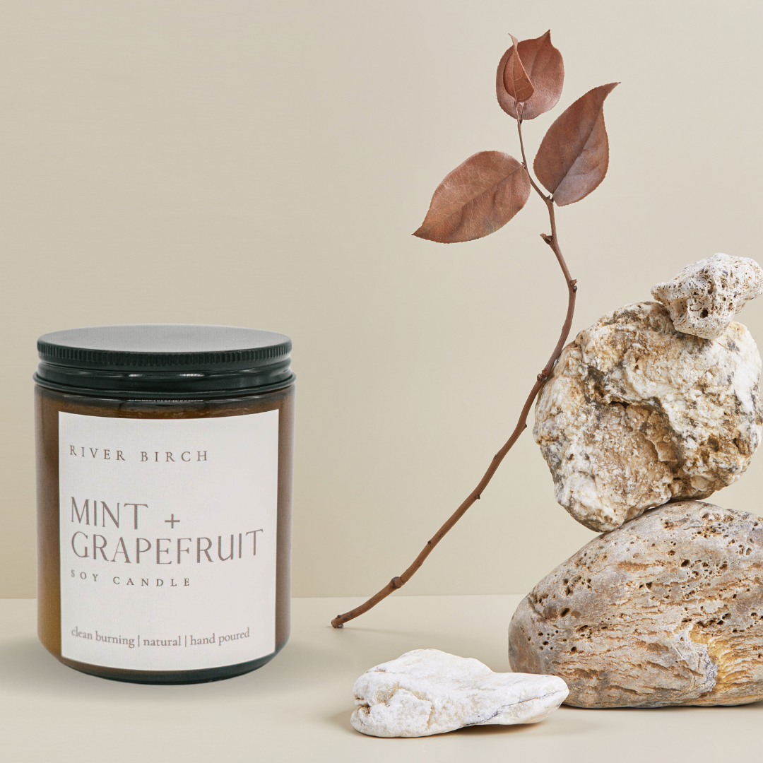 Mint + Grapefruit is a super refreshing and sophisticated fragrance. It starts with ripe, tangy grapefruit fused with garden-fresh mint. Hints of lavender and rhubarb add depth and complexity to this fresh fragrance. Citrus essential oils enhance this bold scent, while mint, thyme, and bergamot essential oils give it an herbal counter to the punchy, juicy grapefruit.