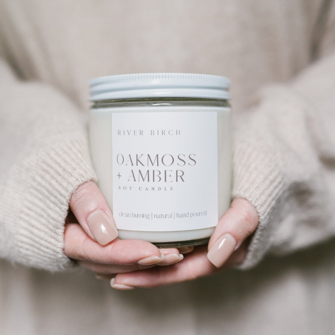 Oakmoss + Amber is a modern, versatile scent with bright citrus, earthy sage, and soft lavender. A rich base of oakmoss, amber, and tonka adds depth and warmth for a captivating finish.