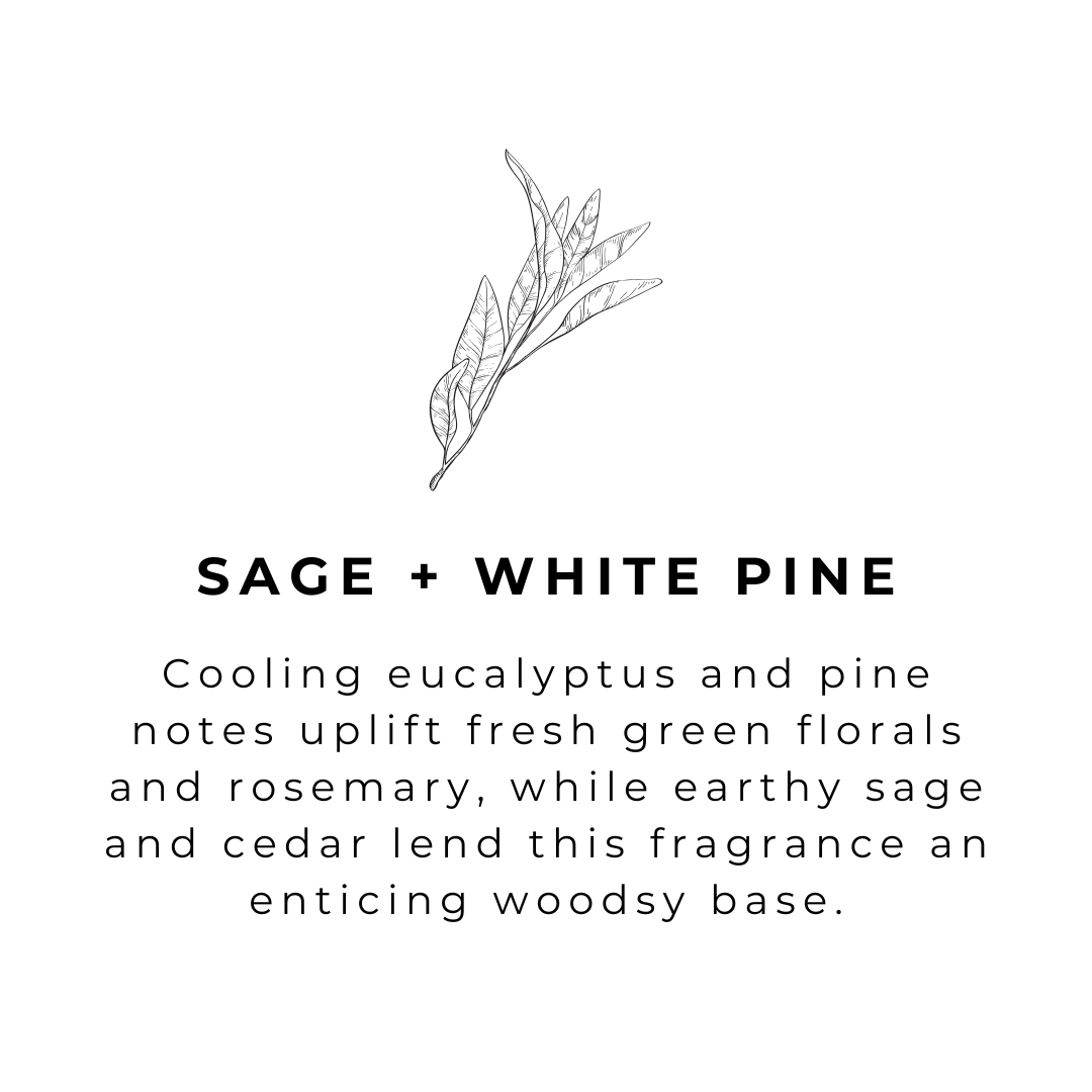 Cooling eucalyptus and pine notes uplift fresh green florals and rosemary, while earthy sage and cedar lend this fragrance an enticing woodsy base.