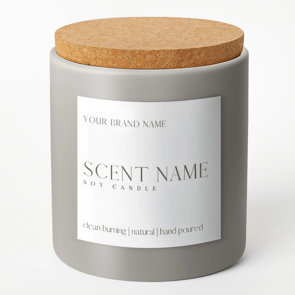 15oz Ceramic Gray Soy Candle (Unlabeled or Custom Label)