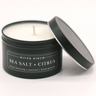 Our Sea Salt + Citrus evokes the churn of the sea, wrapping the water, sand, and salt together into a clean and ozonic scent. Top notes of lemon, orange, and fresh ozone give way to a heart of briny sea salt and a hint of jasmine. Light musk balances the woody violet and cedar in the base.