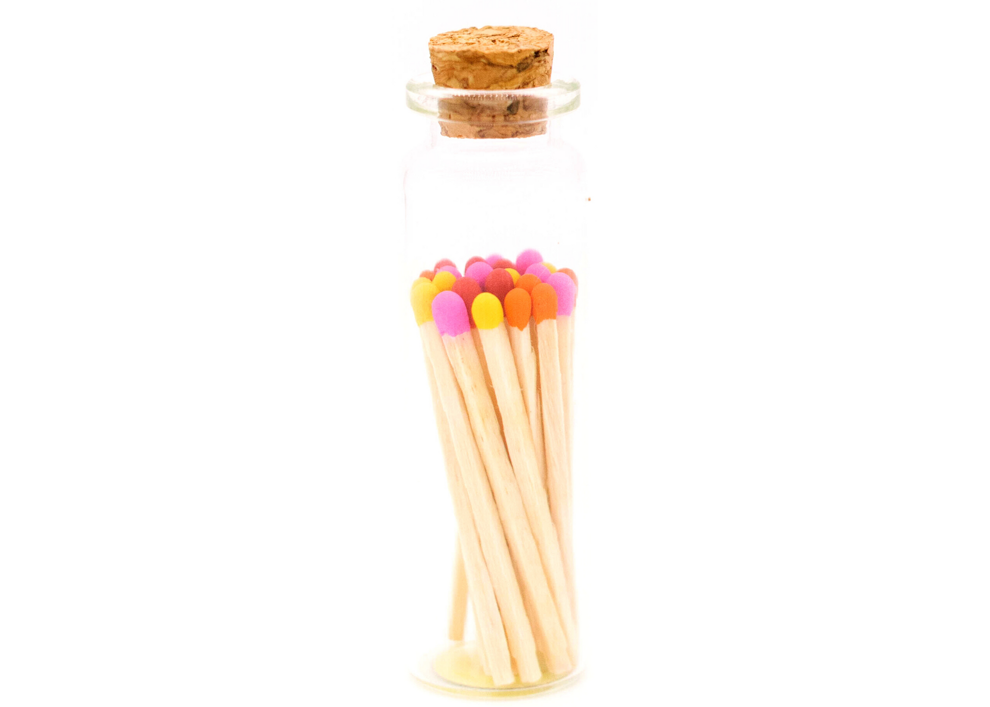 - 1 9/10" Match Sticks Natural Wood with Magenta Pink, Cherry Red, Pumpkin Orange, and Pineapple Yellow