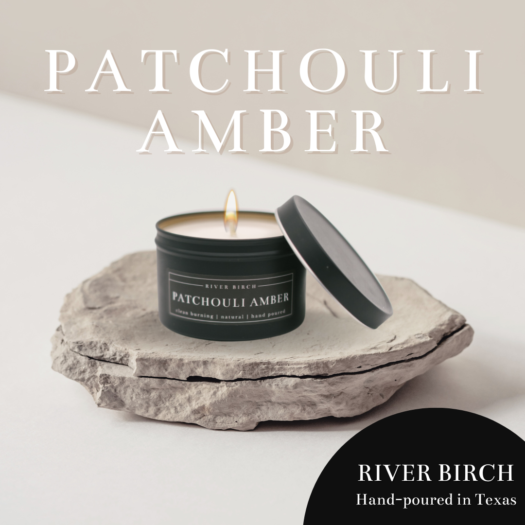 Our Patchouli Amber candle is an earthy blend of light citrus followed by warm clove and exotic florals on a delicate bed of silky musk and patchouli.